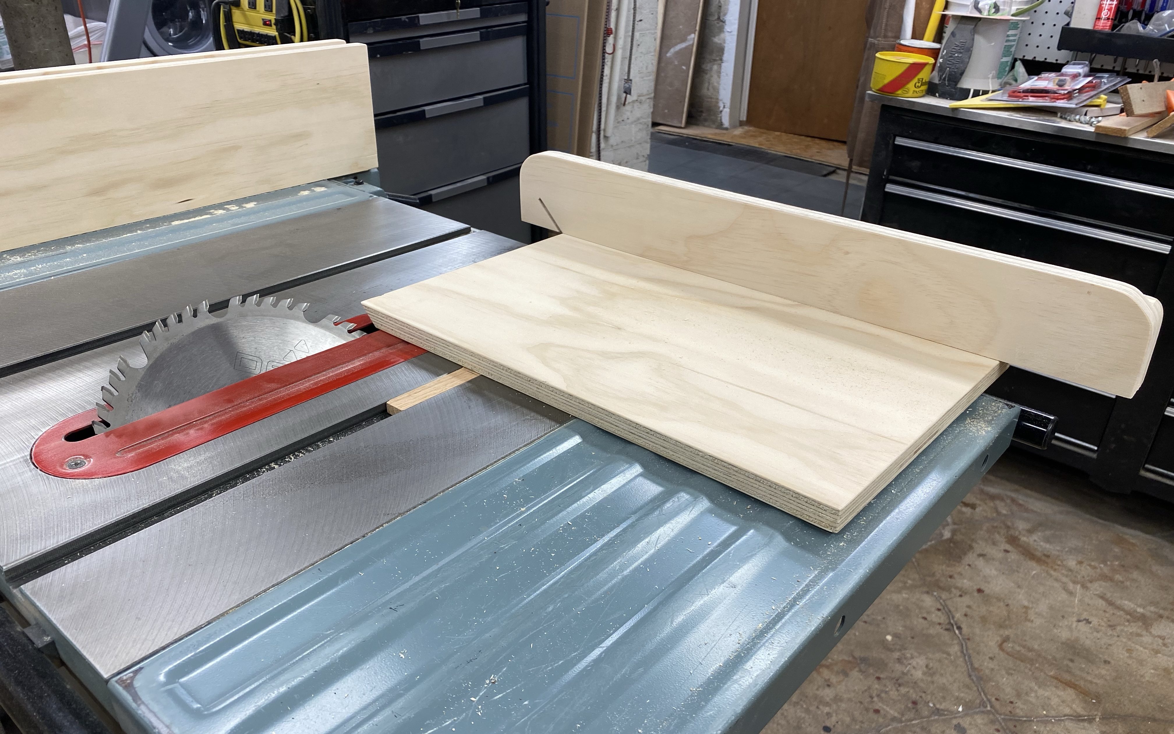 Essentially, I decided to go back to the basics. Making square, repeatable cuts. The cornerstone of most woodworking. Now to clarify, square in this case refers to making a perfect 90 degree cut to the board. If the wood is milled properly (a story for another day) and you cut it square, when you assemble, you should have nice clean joints. That’s the theory anyway. Normally, I make cross cuts on my miter saw. It’s pretty good, but not perfect. Great for 2×4 type projects of a DIY nature, not so great for crisp, clean joints on a small box. In my head, a voice kept telling me, you need to make a sled. Not the toboggan kind, a sled for the table saw. Specifically a cross cut sled.