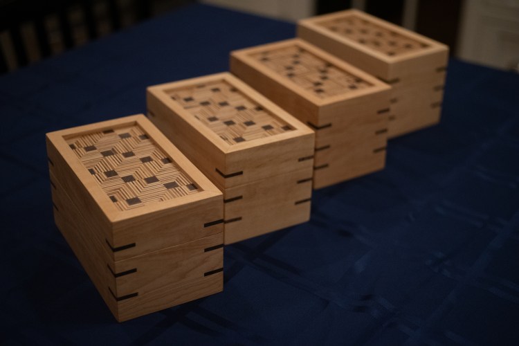 Just like that, and they were done. When I look back at Michael Alm’s boxes, it appeared to take a couple of afternoons at most. Mine took far longer. Some of that was the learning curve for me, some was simply the tools I was using, some was simply that I am not the fastest woodworker out there. In the end I am pleased with how they came out. I would like to try a different pattern, and thanks to a recent sale, I am once again stocked up on baltic birch. It’s calling out to me, “more patterned plywood” it keeps saying. Keep an eye on this space as I am sure there will be more.