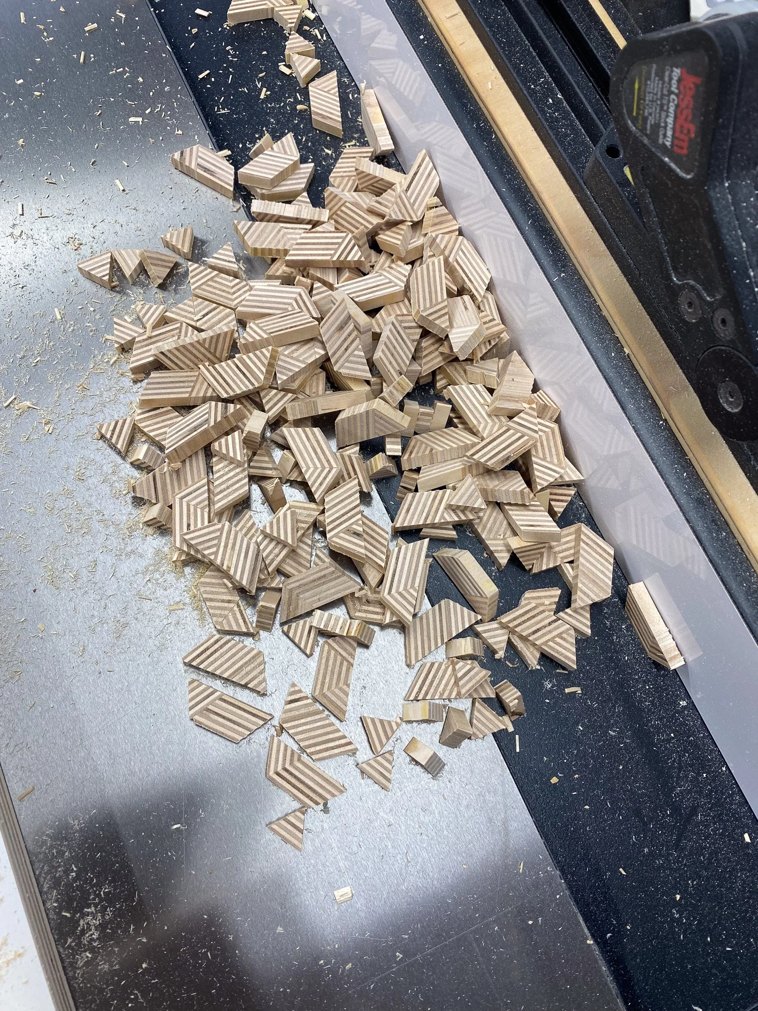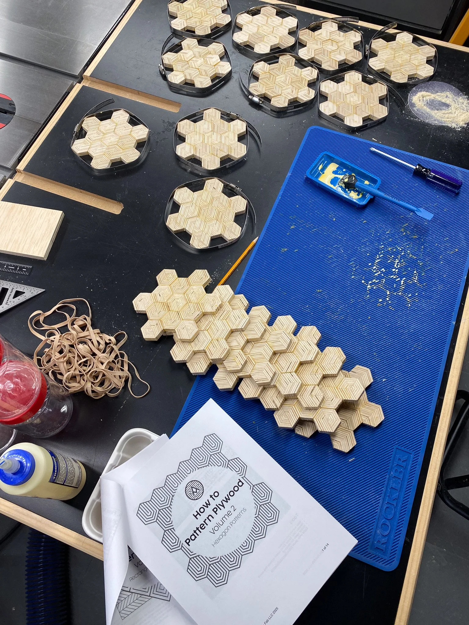 Once again I find myself reaching for the baltic birch plywood, and making some patterned plywood. Previous projects were largely done by watching Michael Alm’s videos on YouTube, or just kind of piecing it out. Since the last time, I purchased plans from Almfab (link to plans), and was eager to try some that were new to me. I settled on hexagon patterns.